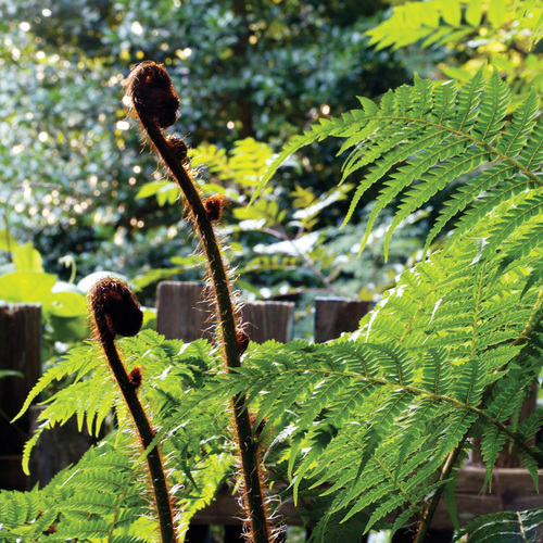 If you need an unexpected, eclectic tropical specimen to anchor a partially shaded area, would you consider a potted tree fern? This lacy beauty adapts well to container life, which is a useful trait because it will need to be brought indoors over winter in colder climates. If it gets any direct sun, especially in the afternoon, keep it very well watered to prevent its foliage from burning.