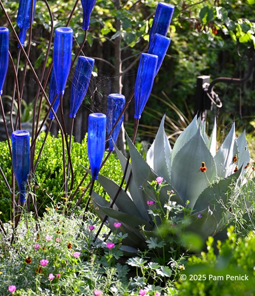 At the other end of the garden, a curlicued squid agave in a tall fluted pot makes an arabesque focal point.