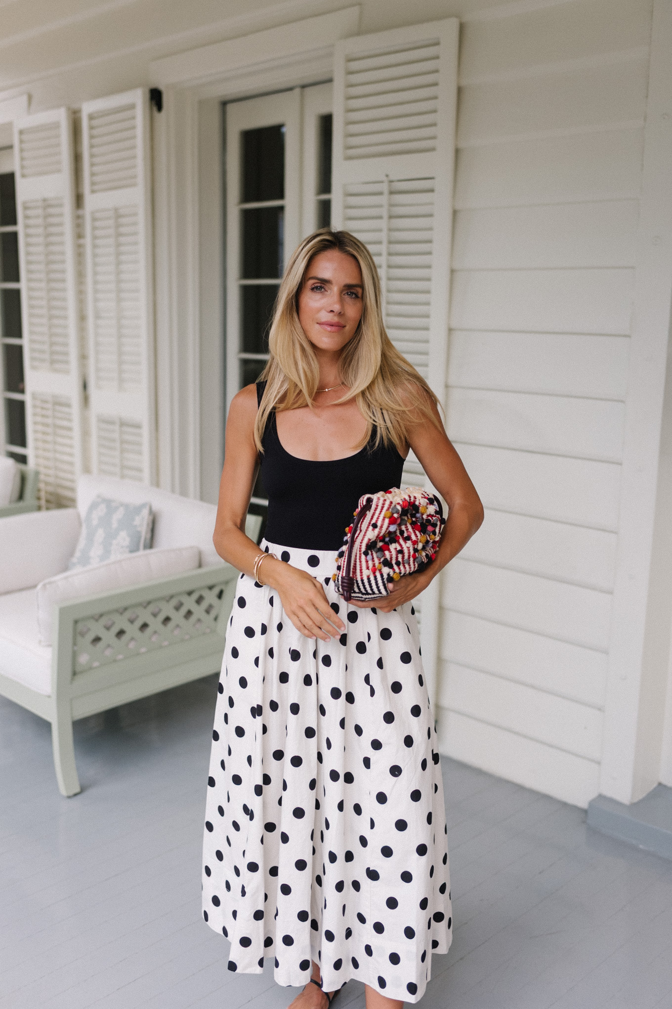black tank black white polka dot maxi skirt