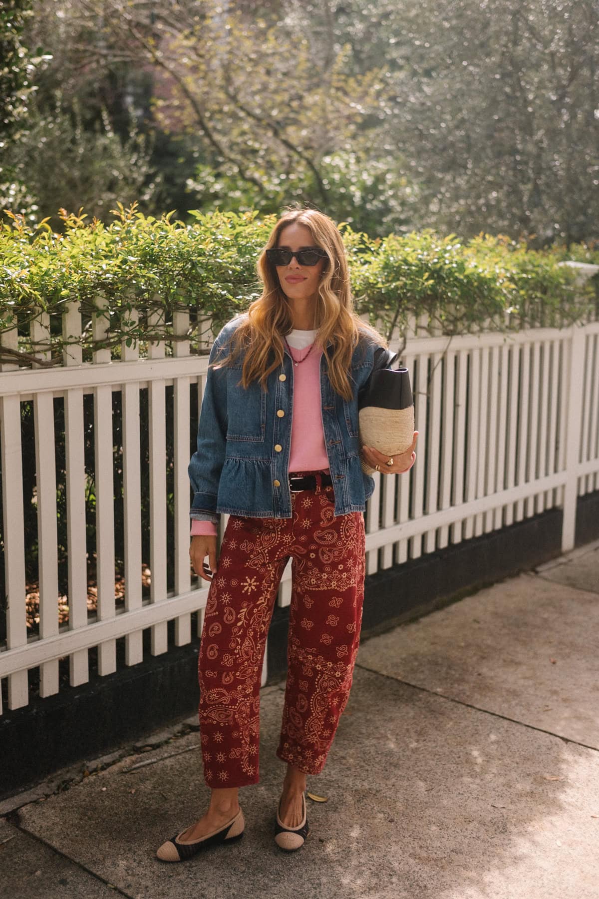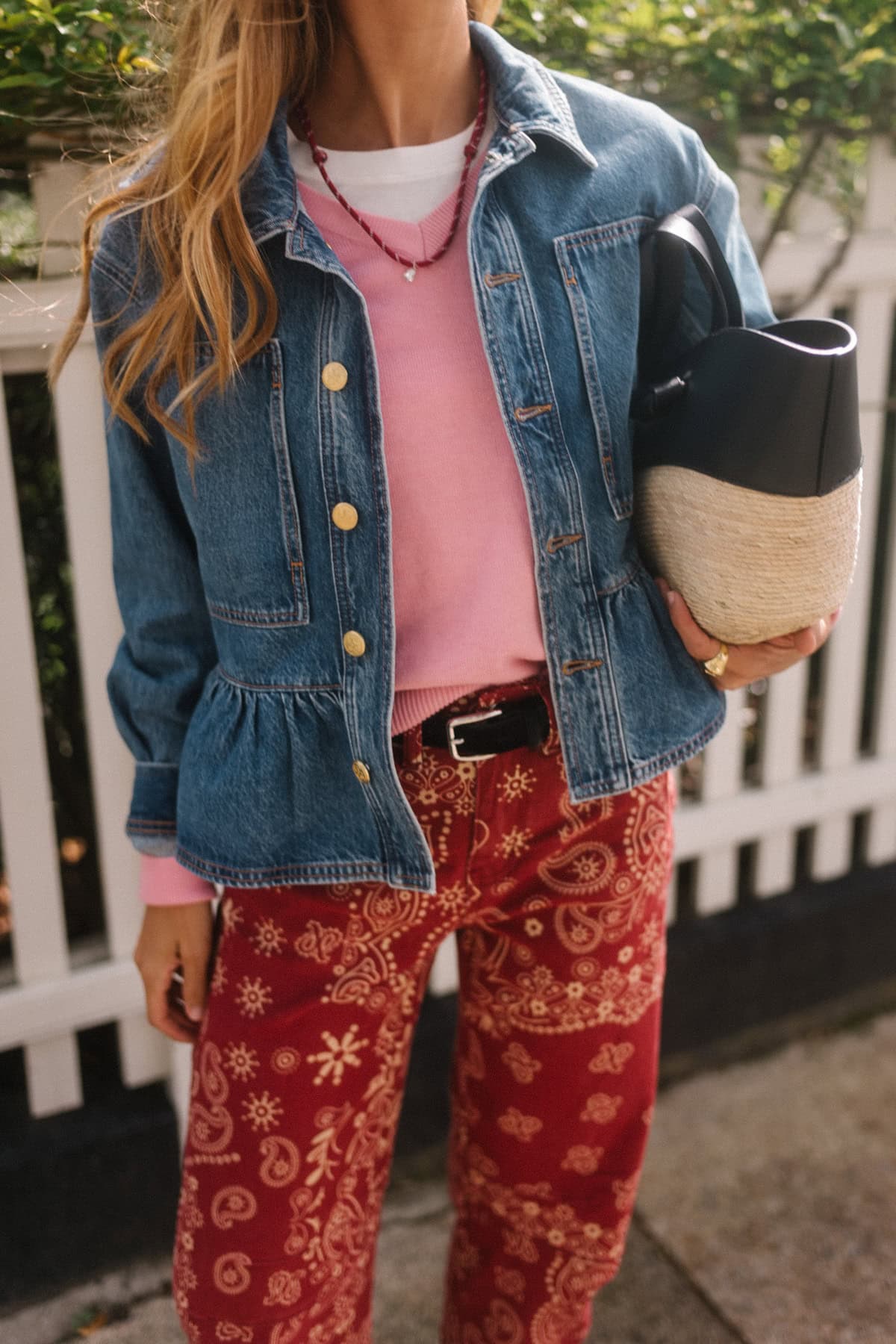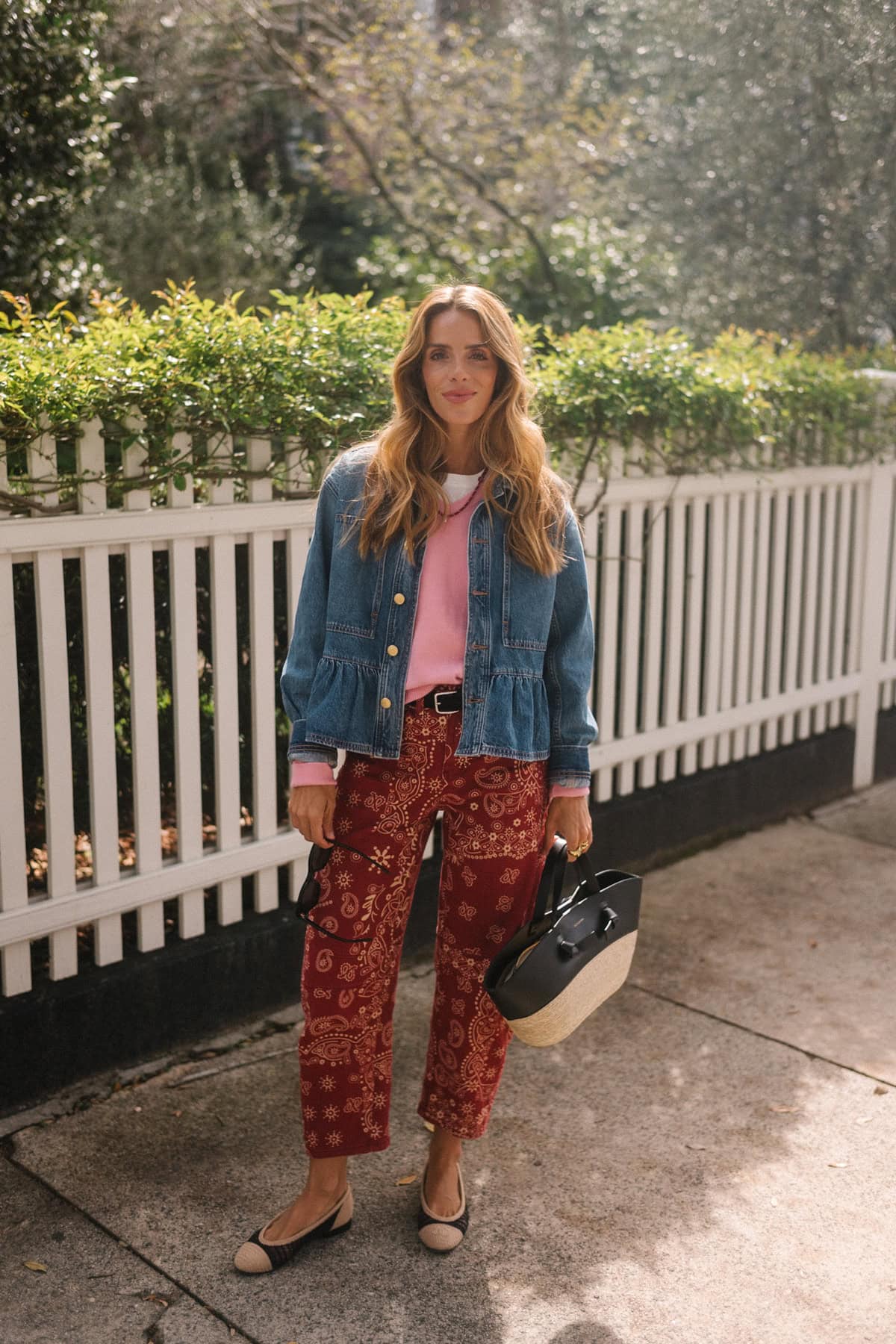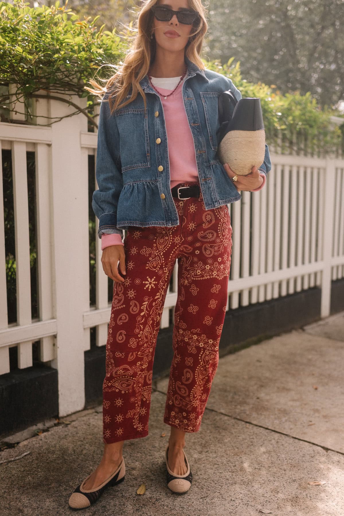 These paisley printed jeans work best as the statement piece, styled with a crisp white top, simple sandals, or a soft knit for daytime plans, weekend outings, or casual vacation dressing.