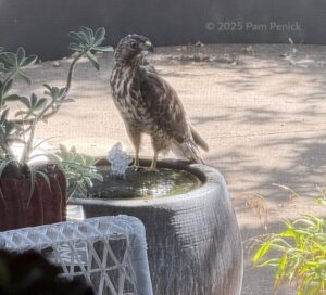 Juvenile hawk at the fountain