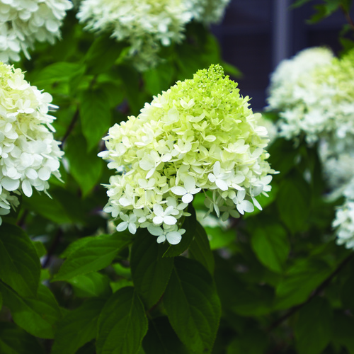 ‘Limelight’ panicle hydrangea has remained one of the most popular hydrangeas despite a wave of newer introductions appearing over the last 20 years. A recipient of the Pennsylvania Horticultural Society Gold Medal award, this extremely durable and long-blooming shrub can grow in urban areas and is tolerant of a variety of garden situations. In midsummer, cone-shaped lime-green flower panicles begin to emerge, reaching 6 to 8 inches long before turning white and then green again, sometimes with shades of pink to burgundy. Toward the end of the growing season, the flower heads fade to a tawny brown and can persist through winter. Like other selections of panicle hydrangea, ‘Limelight’ flowers on new wood and can therefore be pruned in late winter.