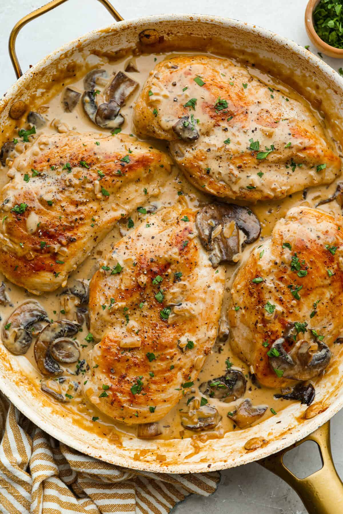 This chicken Diane takes everything you love about steak Diane and turns it into an easy chicken dinner. One skillet, a rich creamy mushroom sauce, and tons of flavor in every bite!