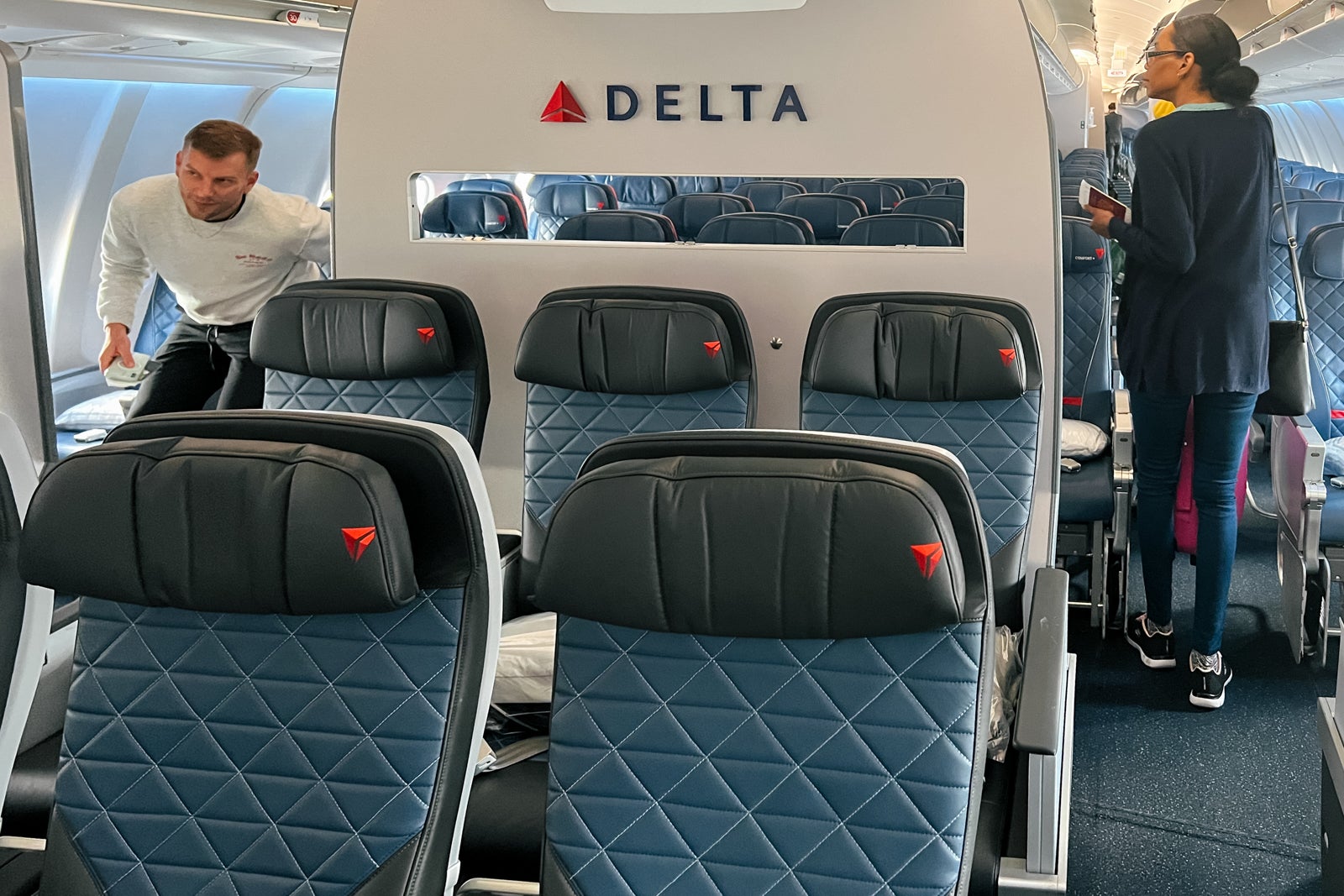 Premium Select seats are comparable to Delta’s domestic first-class recliner seats. They are wider, with more legroom and recline than standard economy seats, but they aren’t as spacious or private as business-class suites.