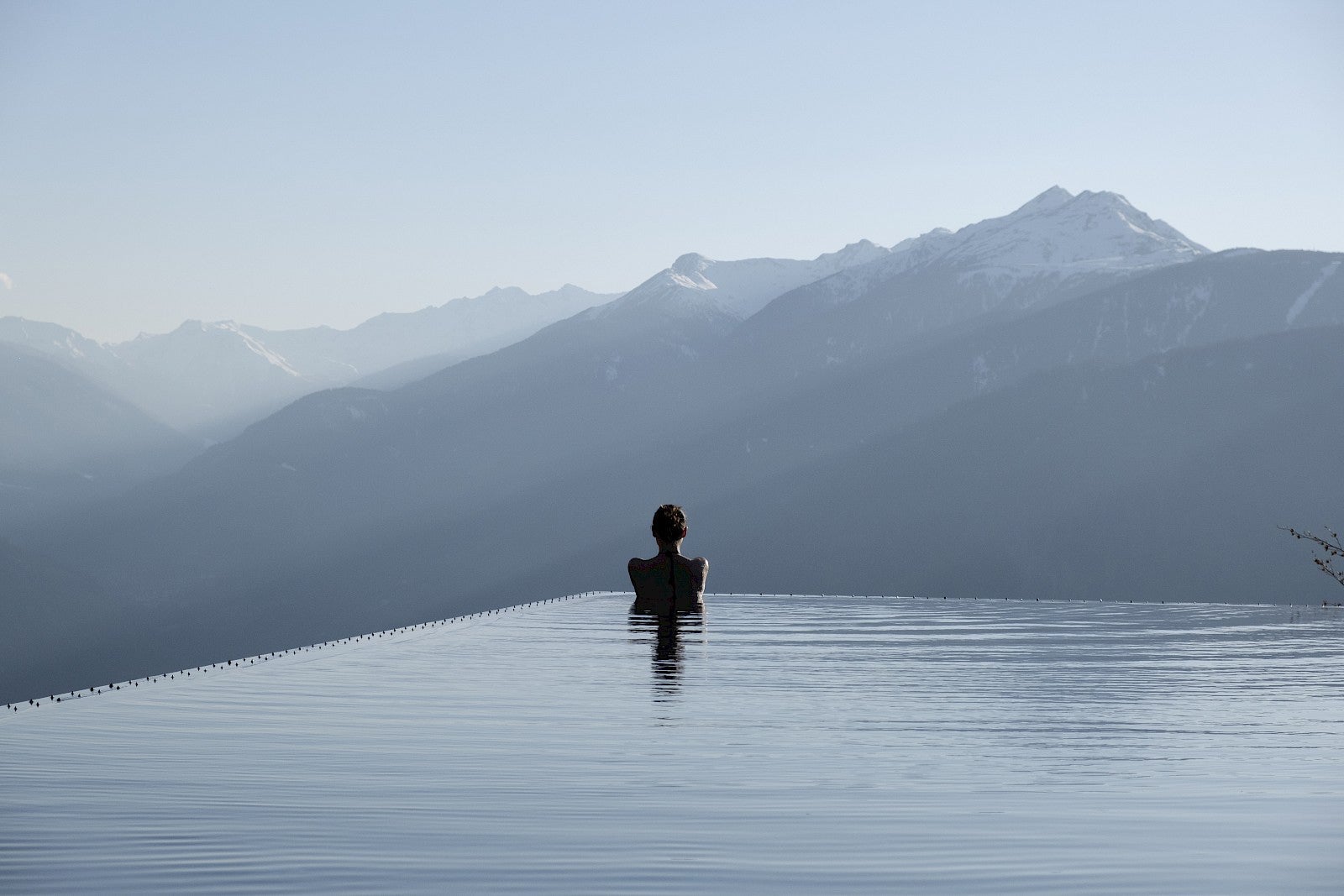 The Hadi Teherani–designed swimming pool at Hotel Krallerhof, on a plateau in the Salzburg region, is so epic that the idea of planning an entire trip to Austria around it isn’t unreasonable in the least. The showpiece is a 50-meter (164-foot) infinity pool that emerges from the gracefully sloping Atmosphere spa building and is integrated seamlessly into a natural bathing lake for a pool-inside-a-pool experience. On the outer edge are lounge chairs and umbrellas on circular lily pad–esque wooden platforms, and there are also whirlpools and a cold dipping pool. As glorious as the whole thing is during summer, it cuts an even more compelling profile in winter, when only snow surrounds the long pool, glowing pale blue in an all-white landscape and letting off steam.