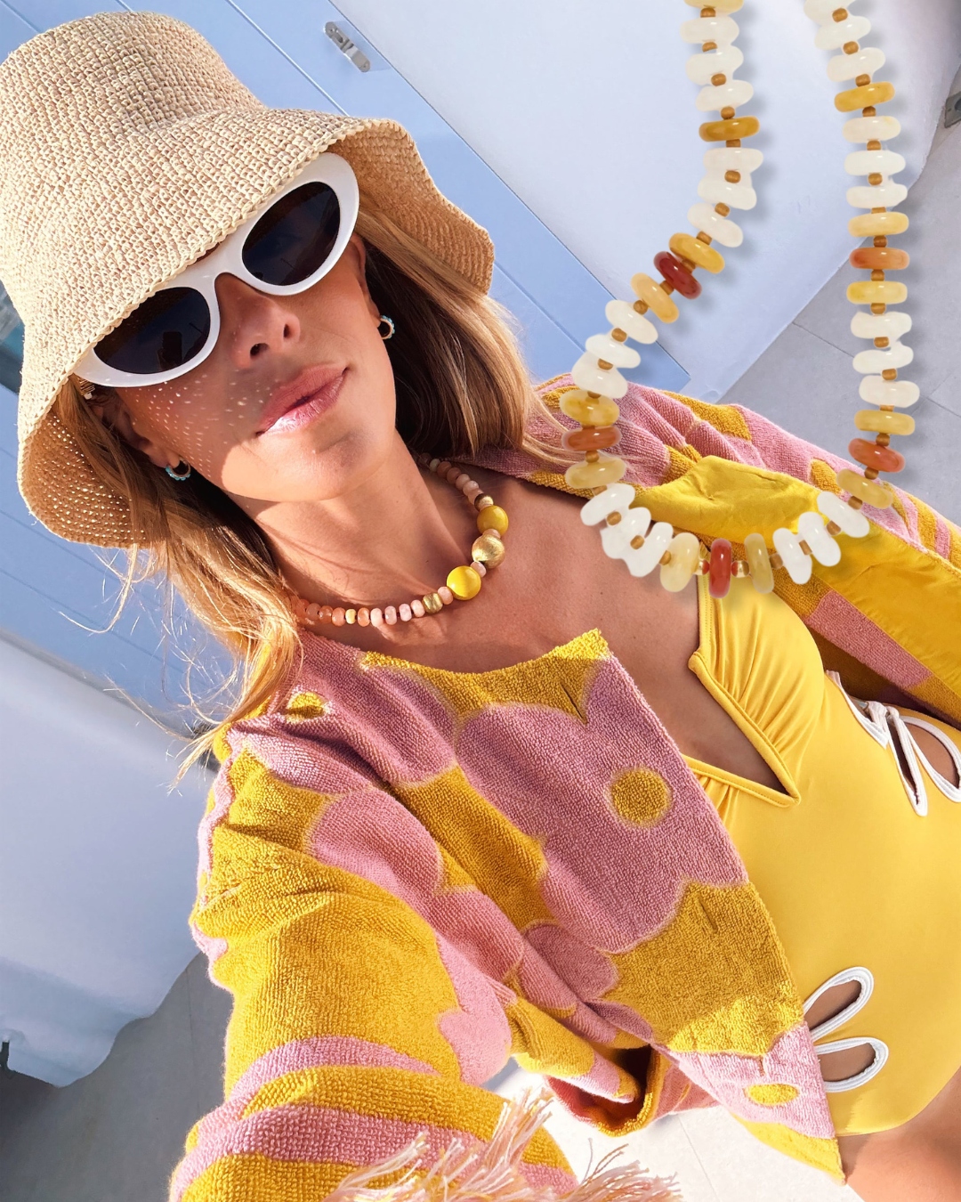 Missoni Swimsuit, Alemais Pants, Chanel, Rebecca de Ravenel & JiaJia Necklaces (old, similar here, here & here) | Molli Top & Skirt, Valentino Hat, Margaux Sandals (similar, less expensive here), Saint Laurent Sunglasses (similar, less expensive here)
