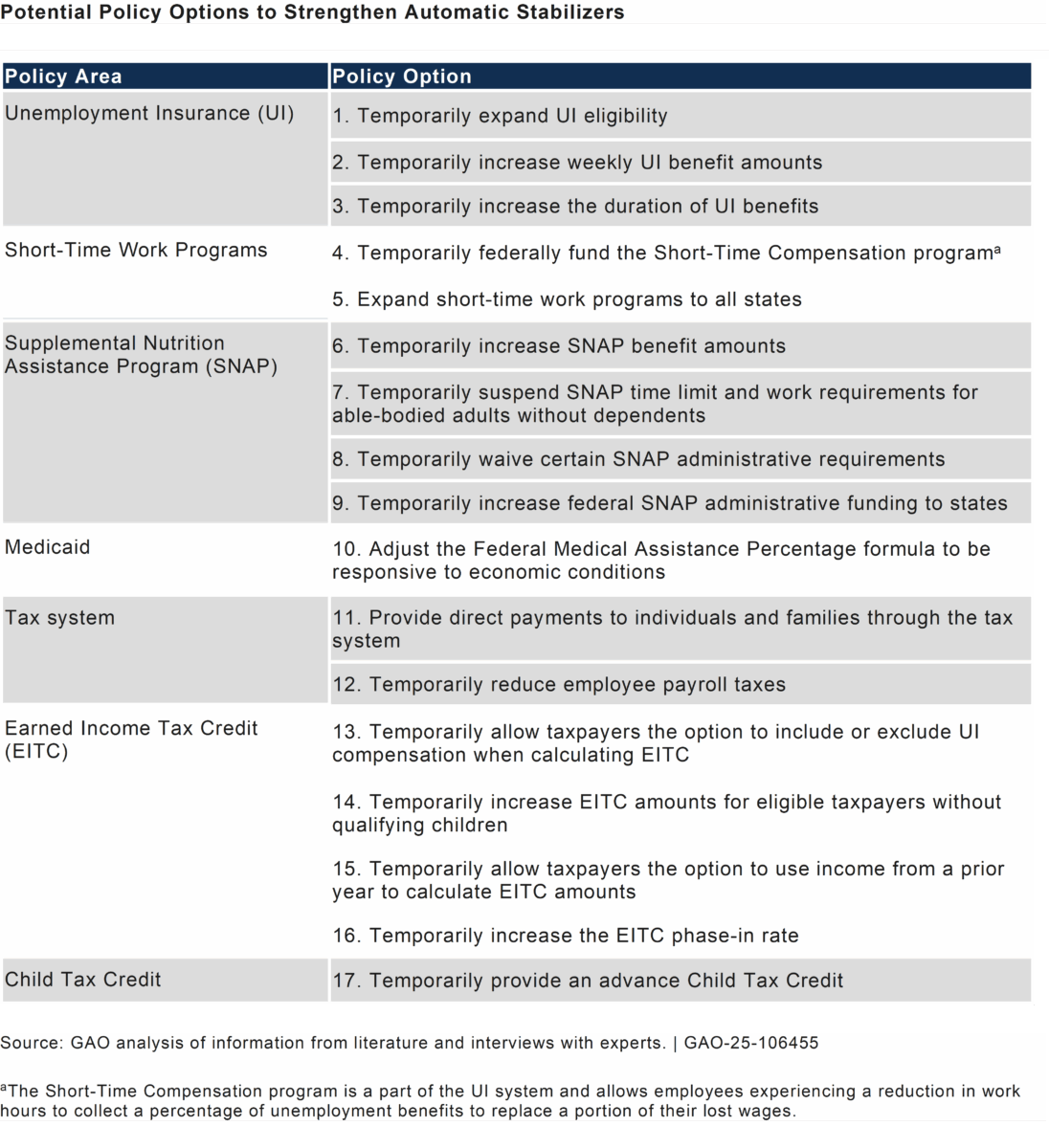 From GAO, “During Past Recessions and Economic Downturns, These Factors Supported an Effective Fiscal Response,” July 15, 2025.