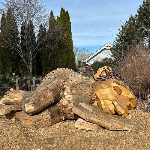 This “on the road” isn’t about gardens so much as the magical creatures that can be found there. Thomas Dambo creates these marvelous trolls out of reclaimed lumber—these are from his Trolls: A Field Study installation at the North Carolina Arboretum in Asheville. We had such a wonderful time “troll hunting”; there were many children and dogs participating, wandering along the paths searching for the elusive trolls!