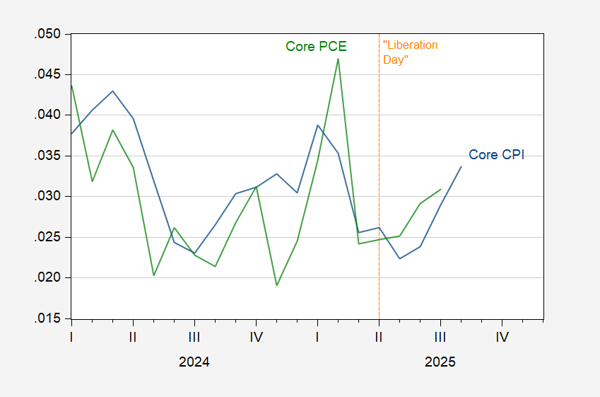 HomeEconomyInstantaneous Core Inflation Posted in Economy Instantaneous Core Inflation on September 11, 2025 Admin Up. Figure 1: Instantaneous inflation for core CPI (blue), core PCE (green), T=12, a=4 per Eeckhout (2024).. Source link
