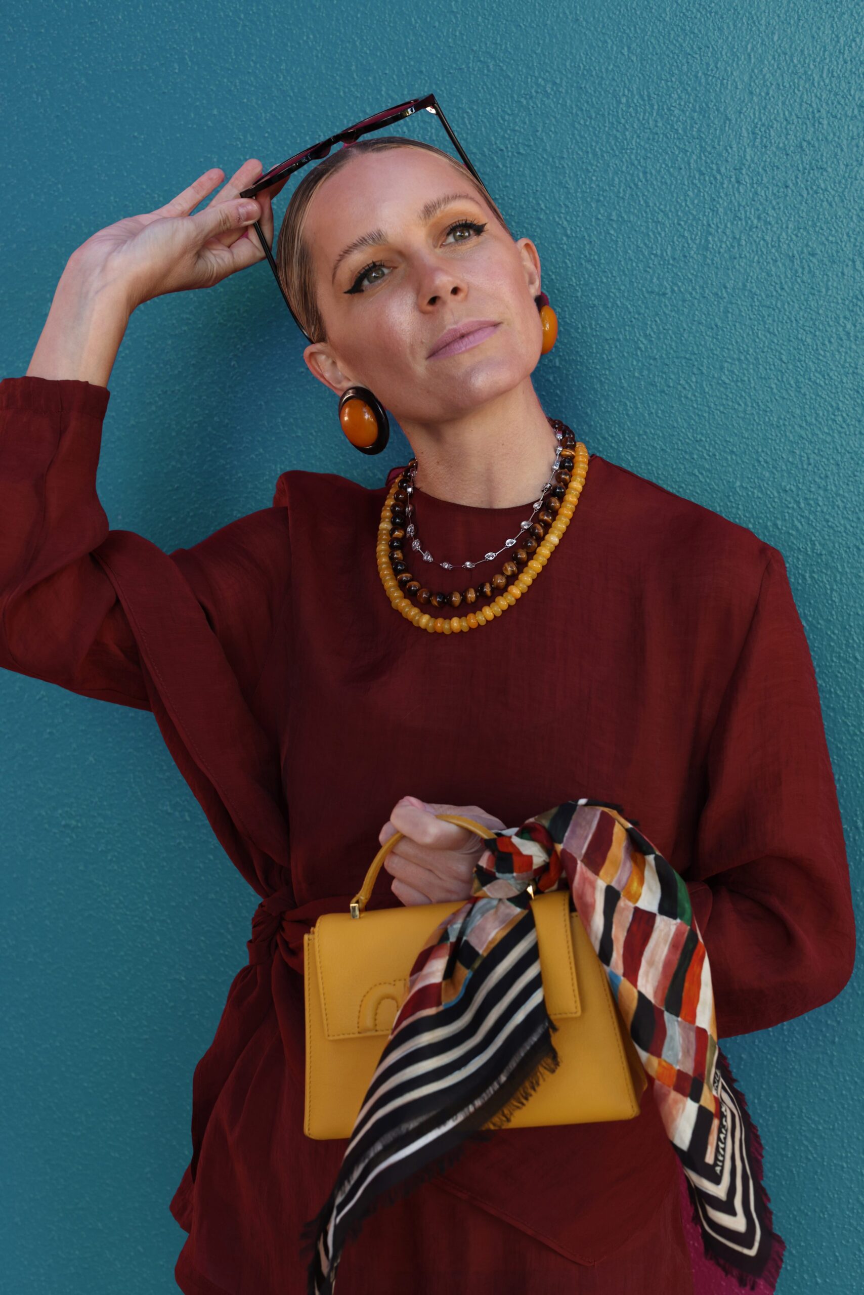 ONE: Earrings // TWO: Silver Necklace, Yellow Necklace, Brown Necklace // THREE: Turquoise Necklace