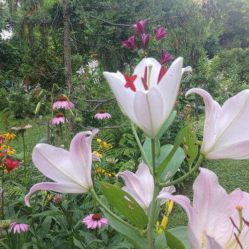Lastly, another light pink cultivar looks out on the rest of the garden. Lee has planted an amazing amount of color in his landscape, yet it all comes together cohesively.