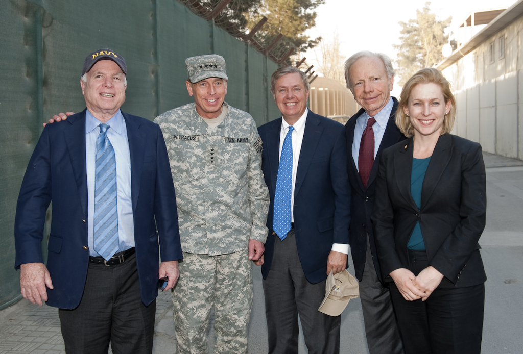 Joe Lieberman (D-CT). One of the all-time great “centrist” warmongers.