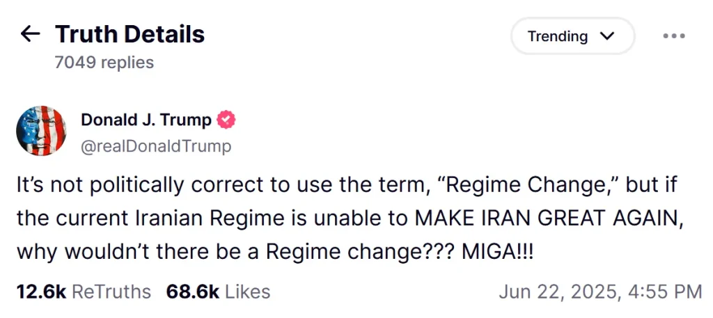 US President Donald Trump admitted that what Washington wants is regime change in Tehran, to overthrow the Iranian government.