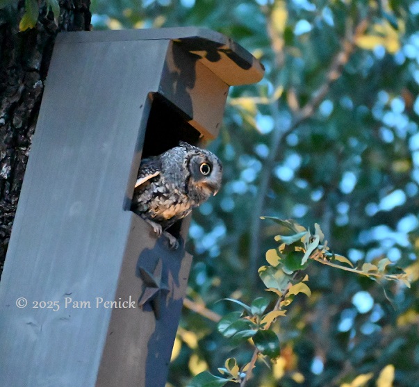 I get a kick out of watching our screech owl pair deliver meal after meal to the owlets in the box. Swoop, land, lean in, drop mouse or snake or bird…