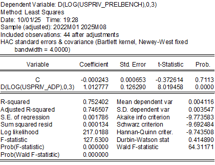 We won’t have the BLS series for private NFP as of Friday. Can we use the ADP-Stanford Digital Laboratory series (which missed consensus by 84K on the downside)