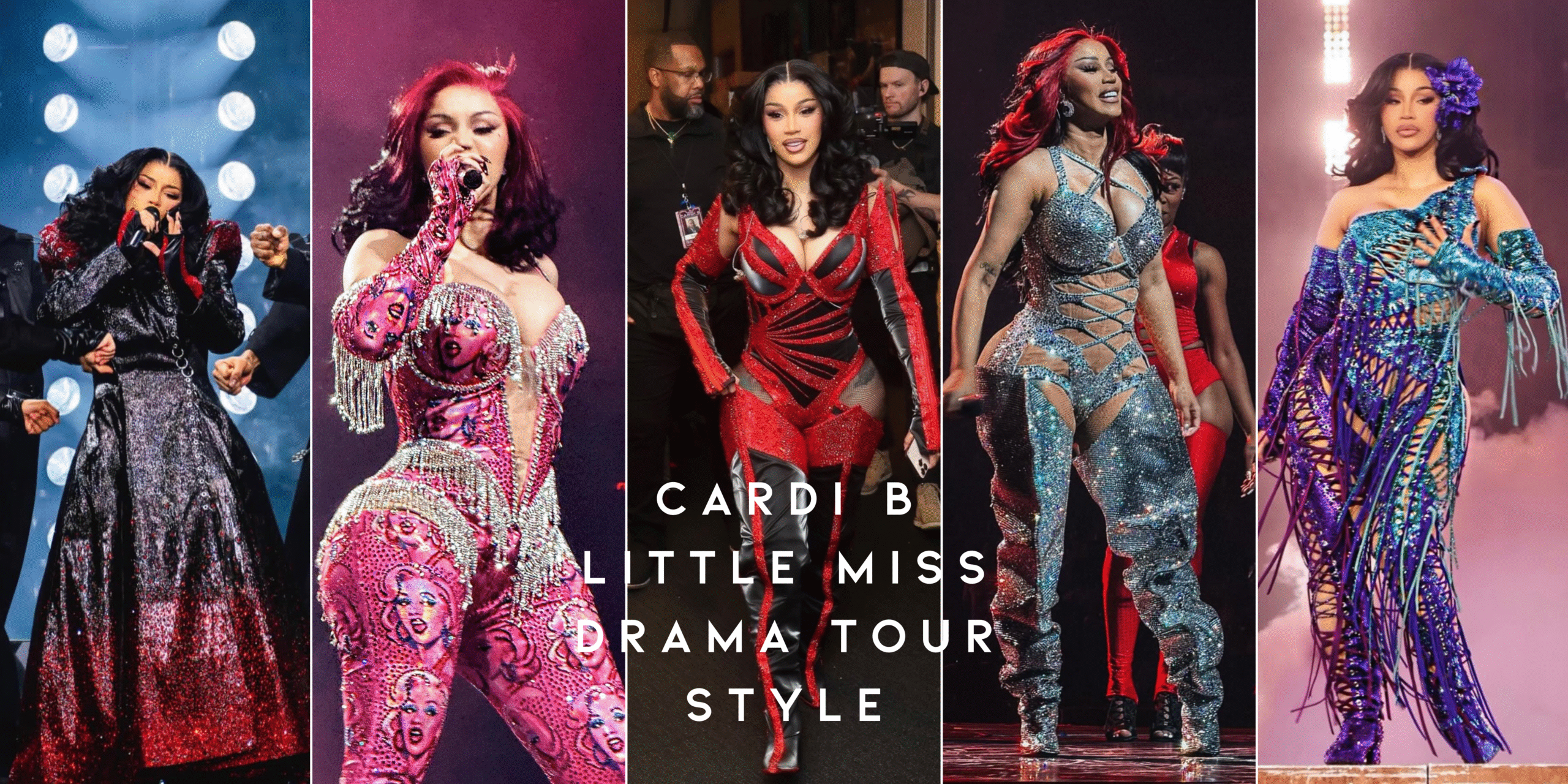 Cardi B took the stage during her Little Miss Drama Tour in a series of custom Bryan Hearns looks styled by Kollin Carter. Known for his high-impact, performance-driven designs, Hearns delivered bold silhouettes, intricate embellishments, and dramatic textures that aligned with the energy of the tour.