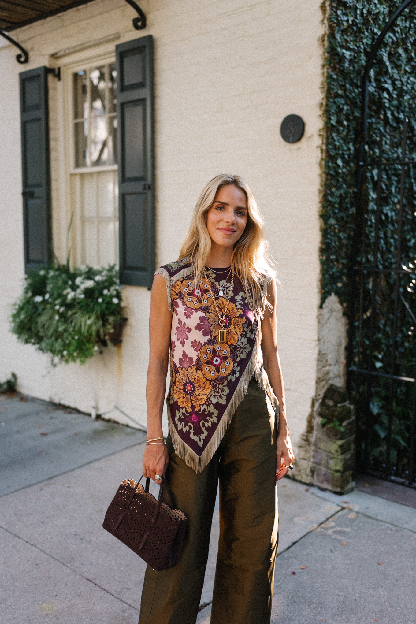 La DoubleJ Top (more sizes here, dress version here, cape version here), Chan Luu Pants, Prada Mules, Alaia Bag, Sherman Field & Arielle Ratner Necklaces