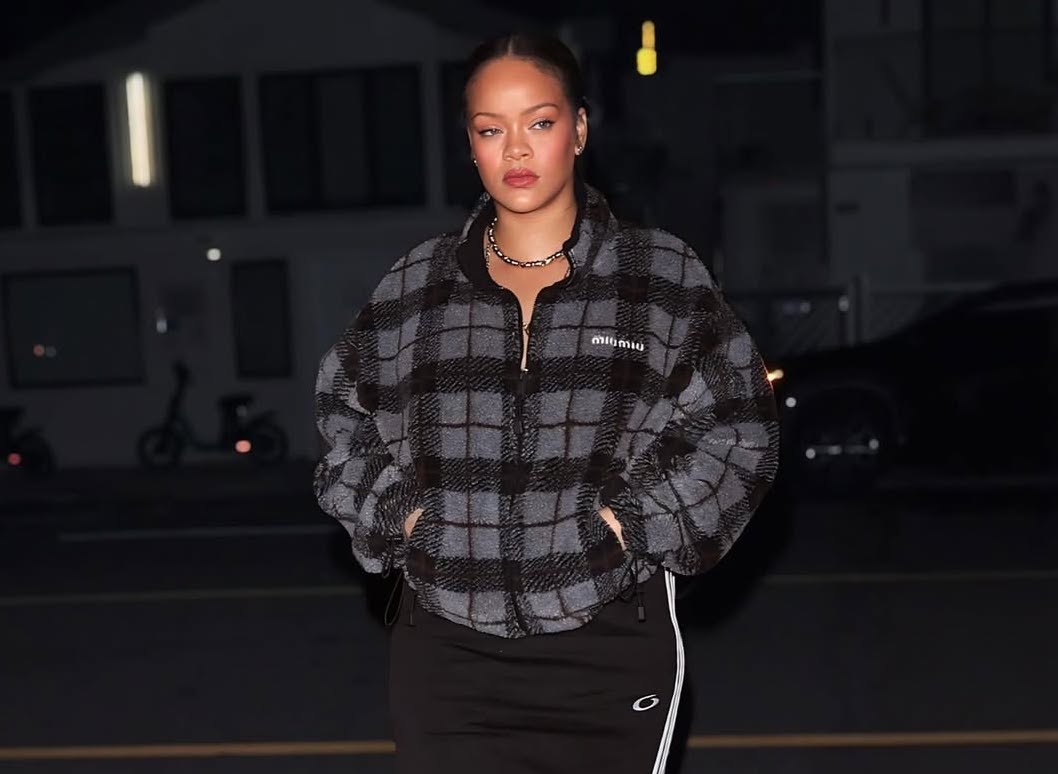 For the outing, Rihanna wore a $2,150 checked teddy zip-up jacket from Miu Miu, bringing warmth and structure to her look.