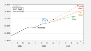 Figure 1: Price of coffee, US city average (brown), BLS import price index for coffee (blue), global price of Arabica coffee, in USD (light green), all in logs, 2025M04=0. Note that the BLS import price index DOES NOT INCLUDE TARIFFS. Source: BLS via FRED, World Bank, and author’s calculations.