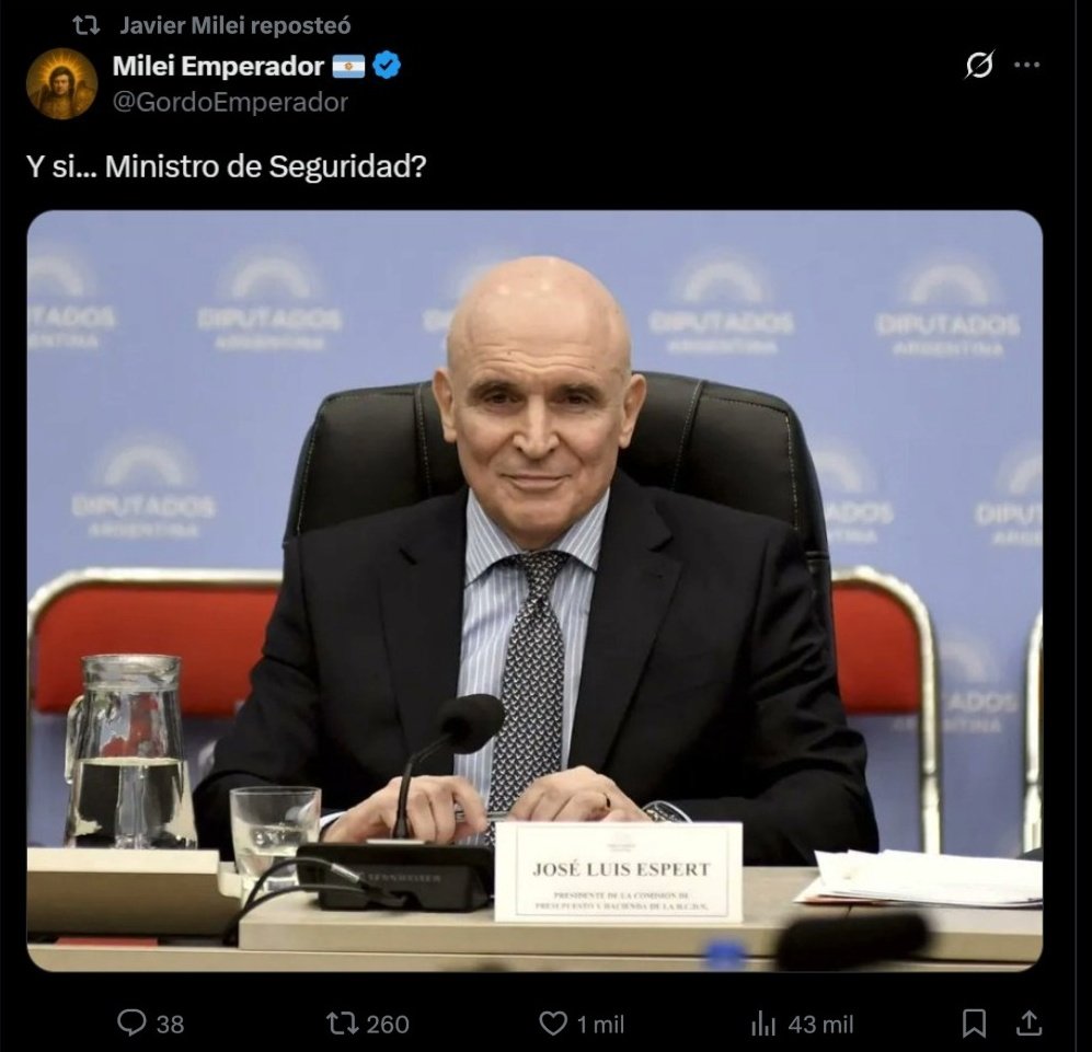 Milei spent the whole of last week defending Espert even as local media published more and more damning details of his links to Machado. After his former mentor finally admitted his guilt and announced his withdrawal from the race, Milei even shared a tweet proposing that Espert, a man who had just admitted taking money from an alleged drug trafficker, be made minister of security after the elections.