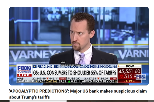 Remember this is the guy who looked at the import price index, and concluded tariffs hadn’t raised prices facing American households and firms, forgetting that the import price index doesn’t include tariffs…