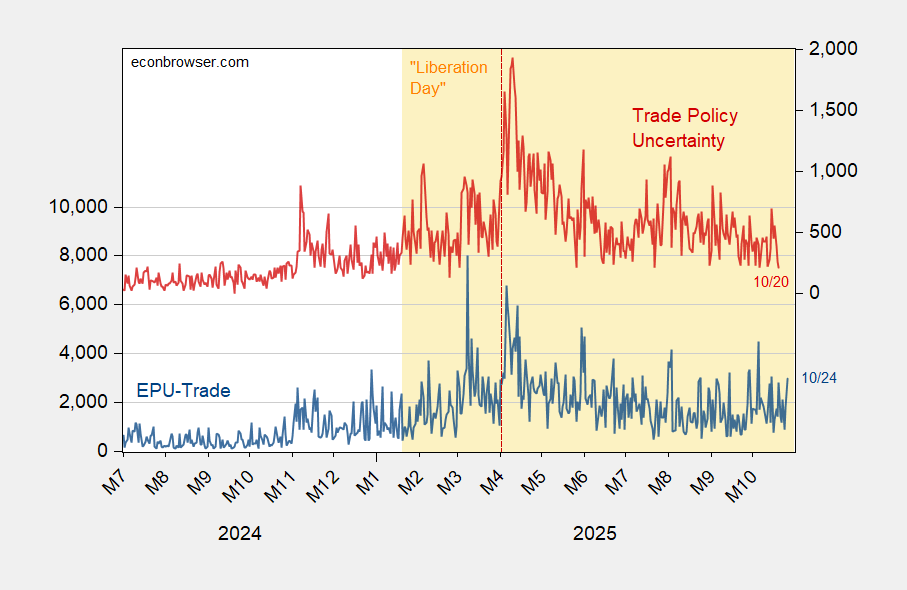 To me, it will be interesting to see (1) how much measured policy uncertainty rises, and (2) whether anybody believes in the durability of Trump’s latest trade threat.