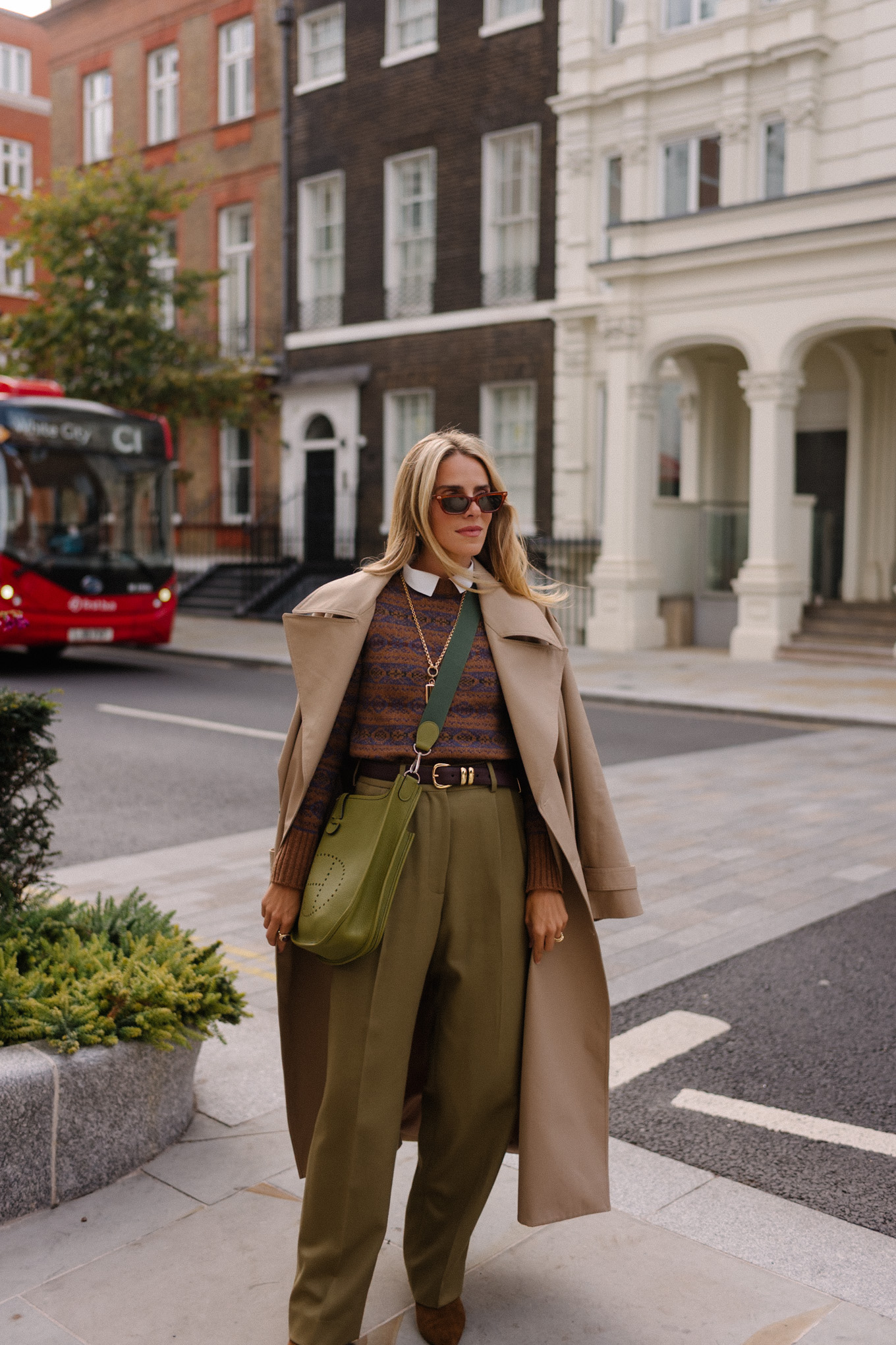 Co Trench, Soeur Sweater, Blaze Milano Pants (old, similar here and here), Hermes Bag (similar here), Gucci Sunglasses, Khaite Belt (old, similar here and here), Aeyde Boots